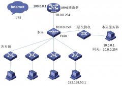 某单位总部防火墙成都H3C F100-A-G2下连各个乡镇,各个下级出口为二层交换机,下级终端的网关在F100上。F100旁挂一台服务器,中间通过二层交换机互连。F100上连一台华为的AR路由器,AR路由器作为服务器的网关并且通过···